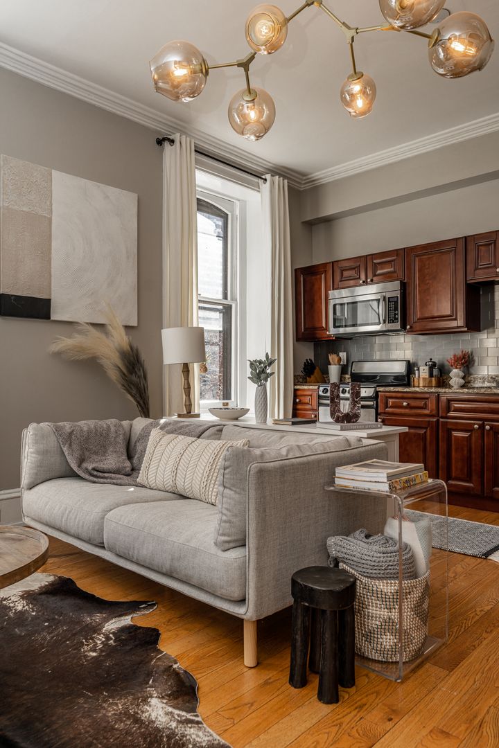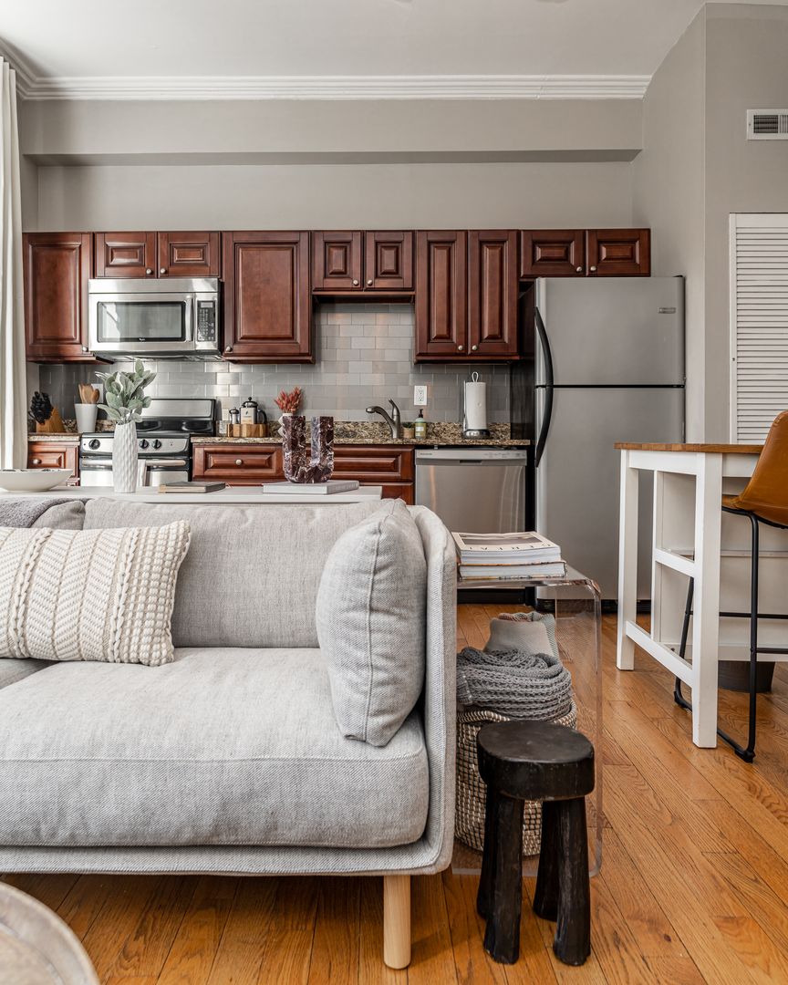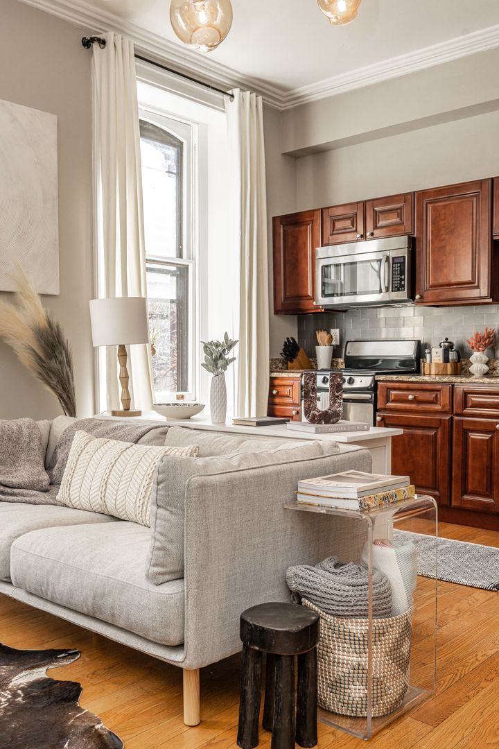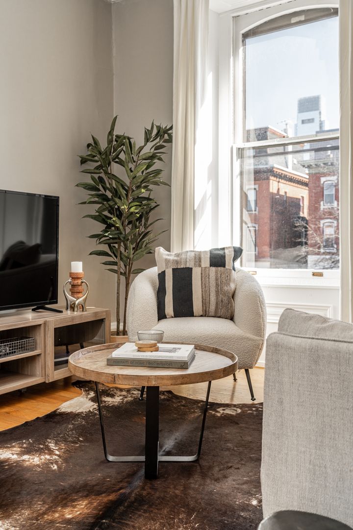 The apartment is fully equipped for a seamless stay, whether you’re here for a weekend getaway or an extended visit. Enjoy a well-stocked kitchen, cozy living area with streaming TV, in-building laundry, and a queen bedroom designed for restful nights. You’ll also find hotel-quality linens, Malin + Goetz bath products, and thoughtful touches throughout. All utilities—including high-speed WiFi, electricity, heat, and water—are included.